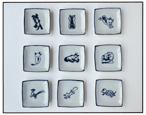 100 年以上銀座で続く老舗喫茶店の豆を使ってドリップした深煎りのコーヒーや、町子が、好んで口にした事から着想を得た、下町の老舗のほうじ茶や、パパイアのお菓子などをご提供しています。 喫茶部のマグカップは、昭和の時代から日本でつくり続けられている厚手の磁器が使われ、それらひとつづつに、すべて違う町子作品の絵柄が、手作業で、焼き付けられている、記念館オリジナルのものです。( 非売品)